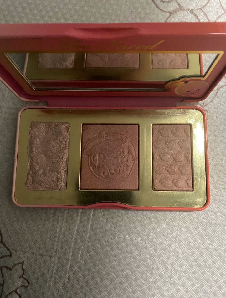 Üç açık bej tonlu ışıltılı allık içeren palet, uygulama için aynalıdır. Cilde doğal bir parlaklık katar. Soldaki rengi düşürdüm kırıldı bu yüzden fiyatı uygun tutuyorum orijinal