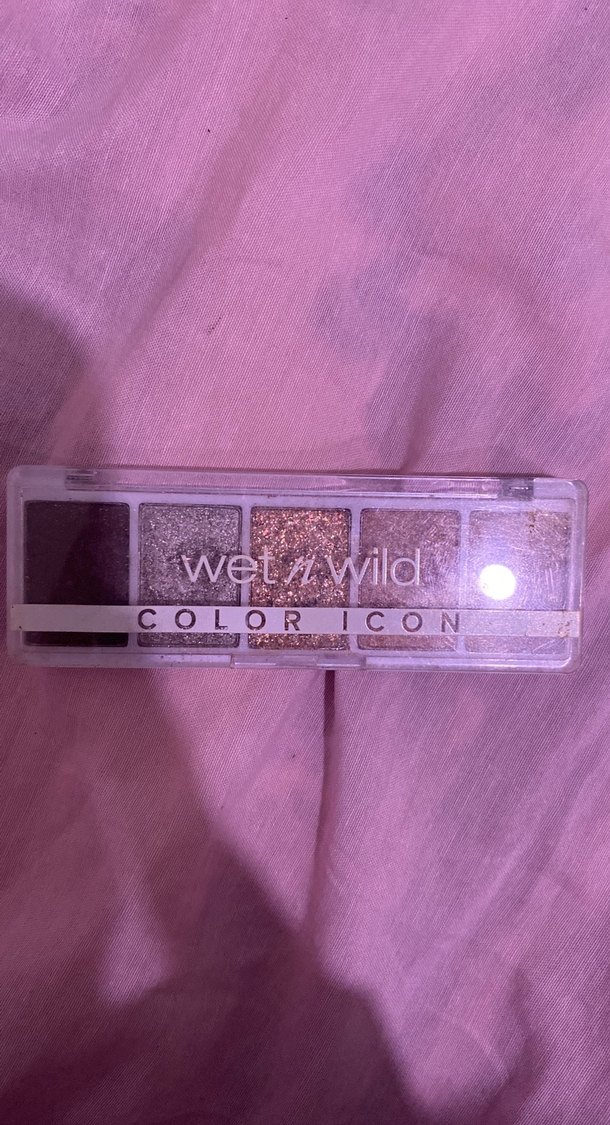 Wet n Wild markasına ait bu göz farı paleti, açık bej tonları ve hafif ışıltılar içerir. "COLOR ICON" yazılı kompakt bir ambalaja sahiptir.