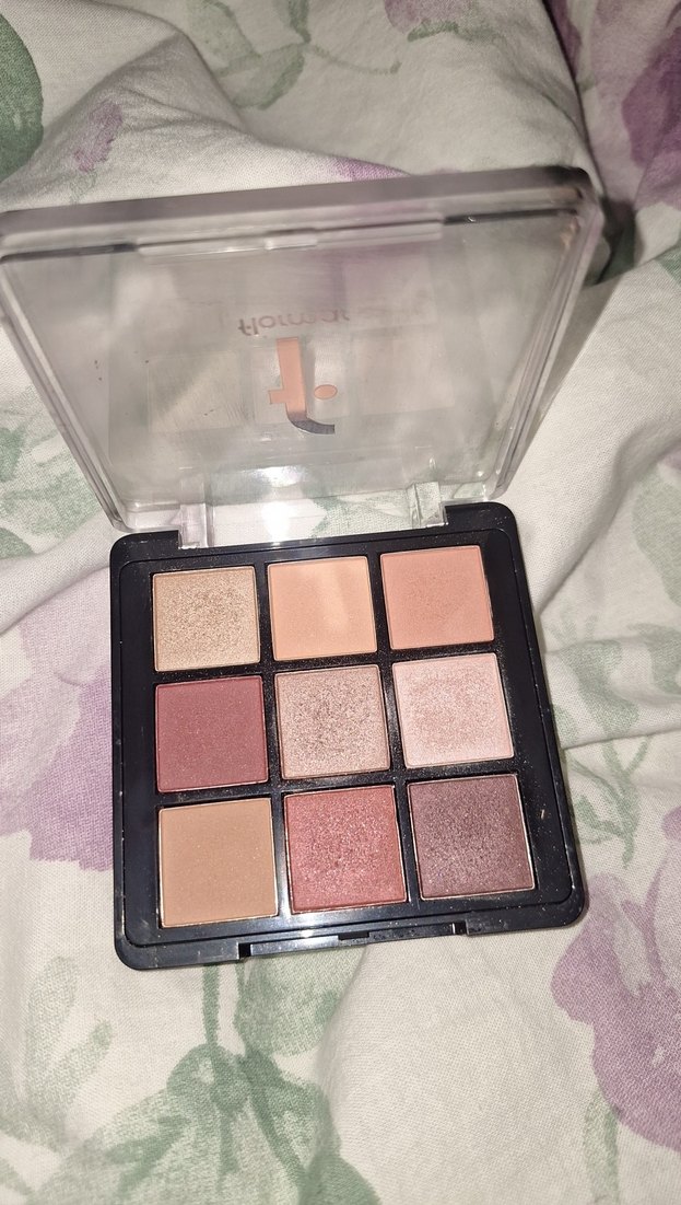 Bej ve sıcak tonlarda dokuz renkli far paleti, mat ve ışıltılı dokularla çeşitli makyaj seçenekleri sunar.