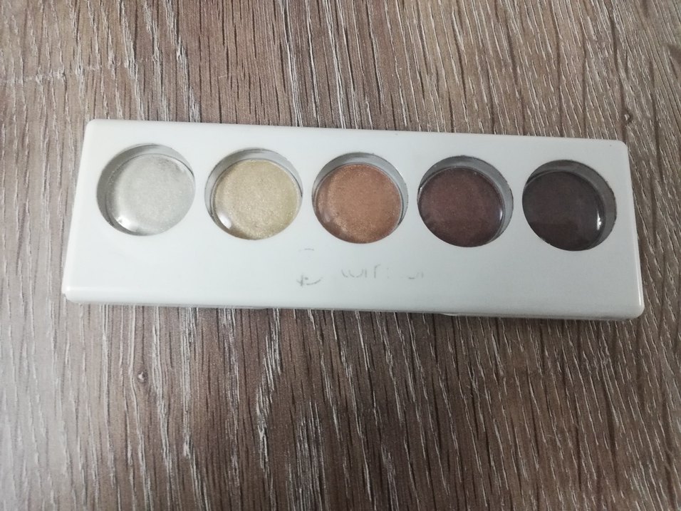Bu göz farı paleti, krem, açık altın, bronz ve koyu kahve tonlarında hafif bej renkler içerir.