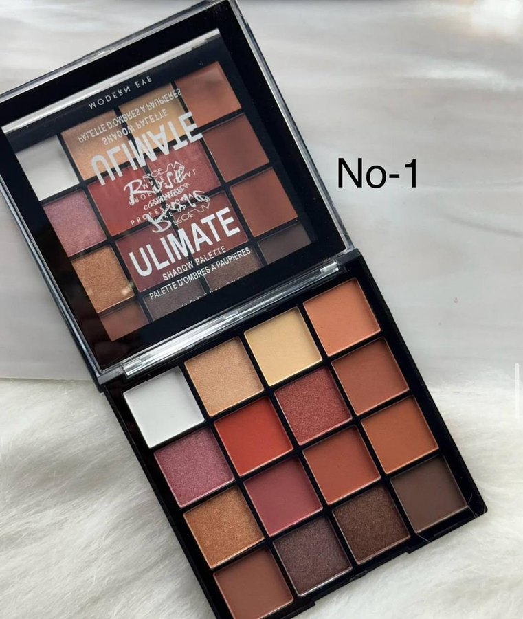 Mat ve ışıltılı bej ile koyu tonlardan oluşan göz farı paletidir. "ULIMATE No-1" etiketiyle sunulur. Çok yönlü makyaj için uygundur. Nyx far paketi no 1 , no 2 adet fiyatıdır.