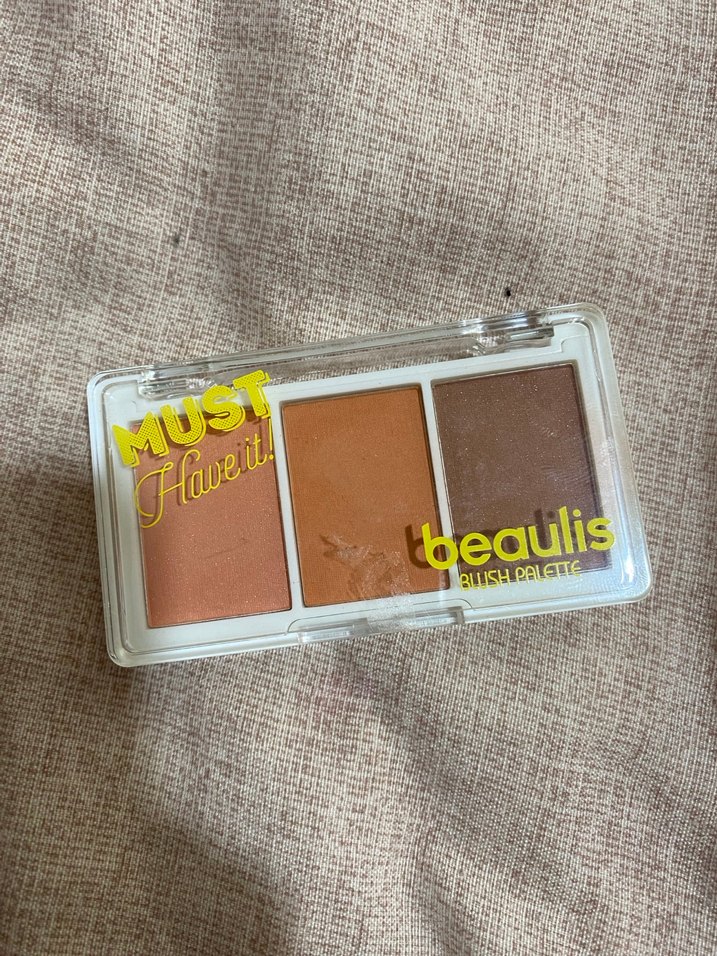 Şeffaf kapaklı kompakt kutuda üç bej tonlu allık paleti. Üzerinde "beaulís" ve "MUST Have it!" yazıları bulunur.