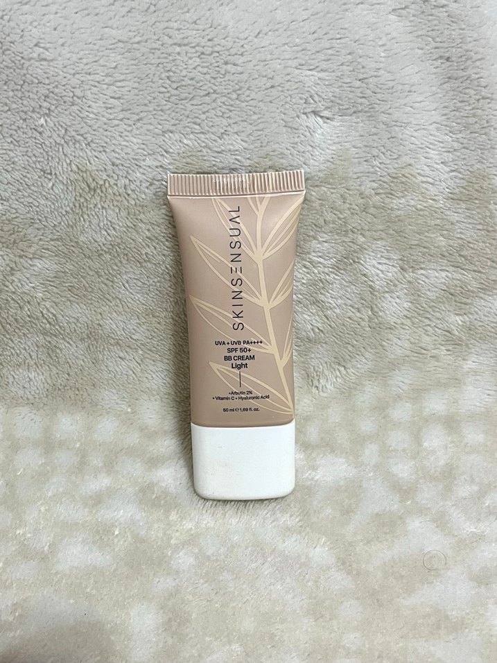 SPF 50 korumalı, açık tonlu bej BB krem, doğal görünüm için pastel renkte hafif kapatıcılık sağlar.