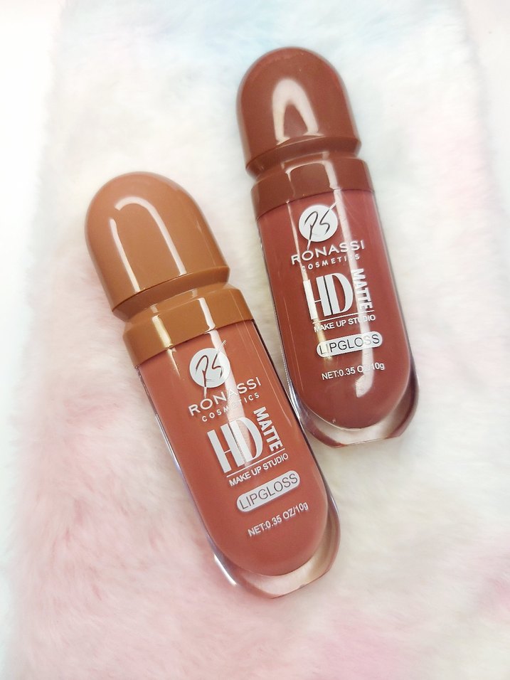 Bej tonlarında, mat ve parlak seçenekleri bulunan hafif renkli rujlar. Üzerinde 'CIPGLOSS' ve 'HD Matte' yazıları yer alır.