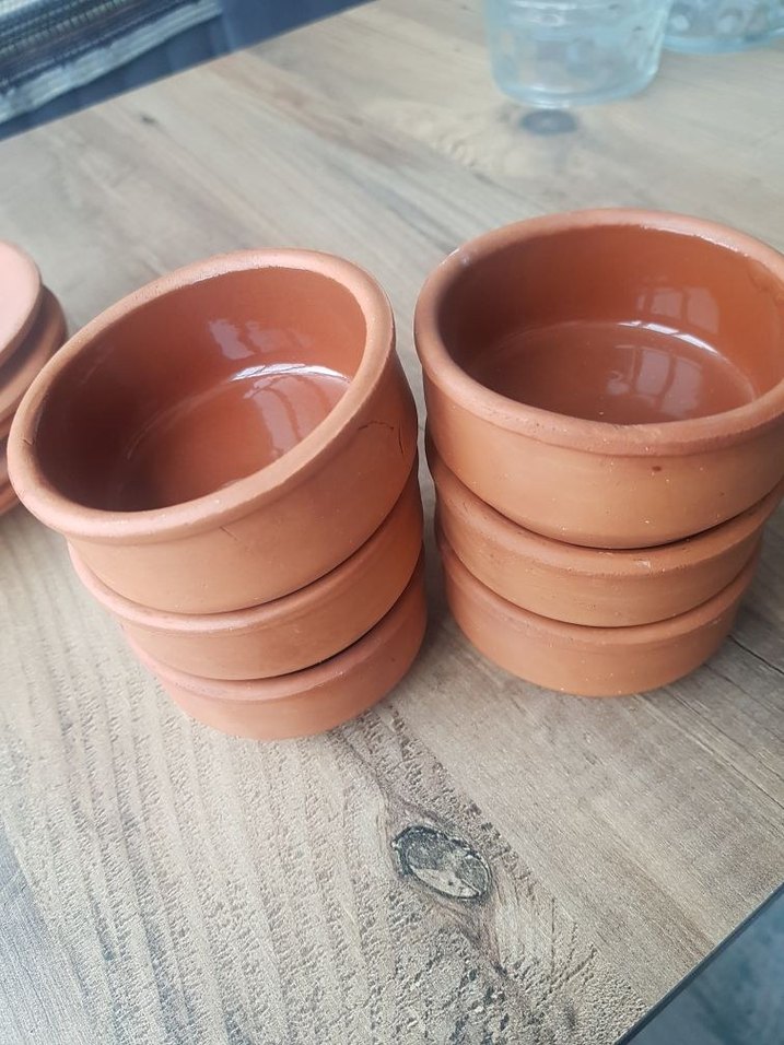 Pürüzsüz yüzeye sahip bej toprak kaseler, küçük porsiyonlar için uygundur. tabaklar hediye