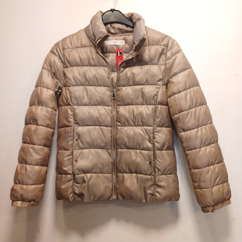 Bej ( Toprak rengi )Fermuarlı şişme Kadın Mont