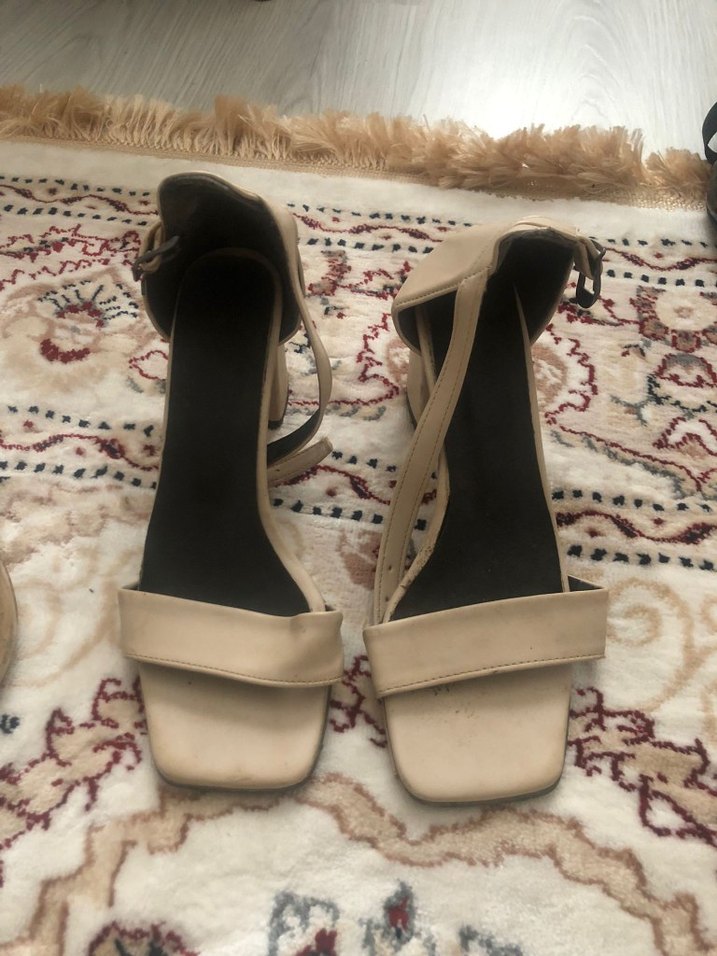 Bej tokalı ince topuklu, yumuşak kauçuk malzemeden yapılmış sade tasarımlı kadın ayakkabı. Günlük kullanım için bohem ve Paris tarzını yansıtır.