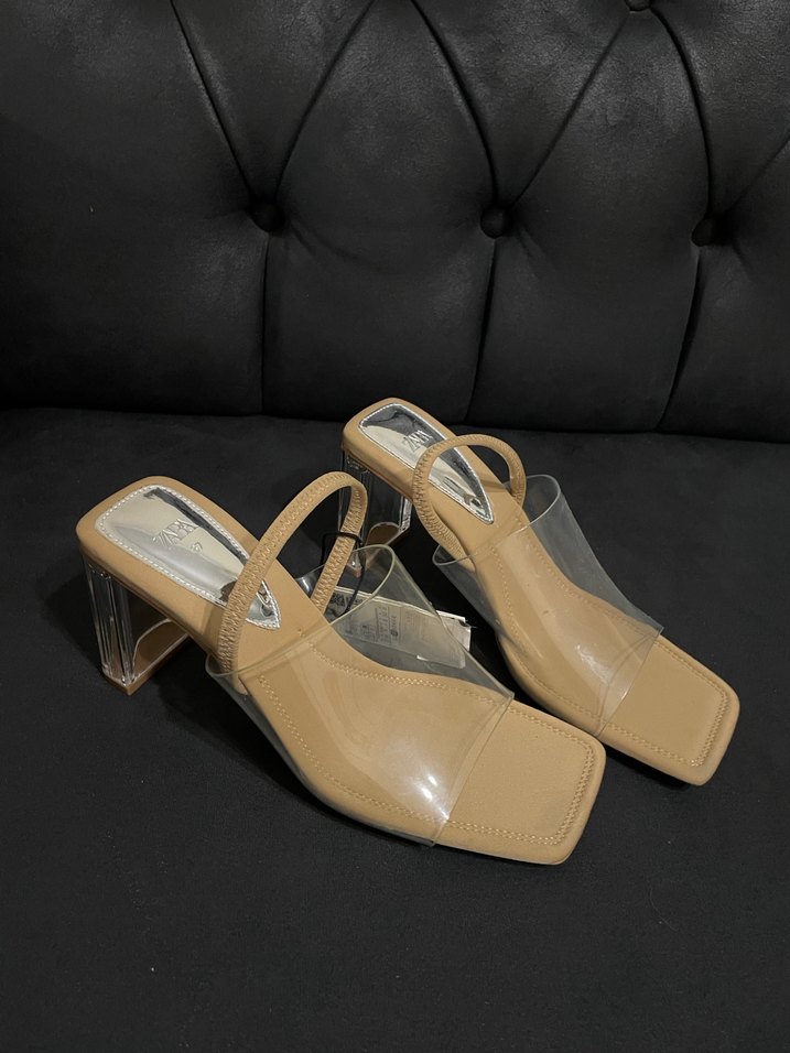 Bej Topuklu Şeffaf Bantlı Kadın Terlik Zara