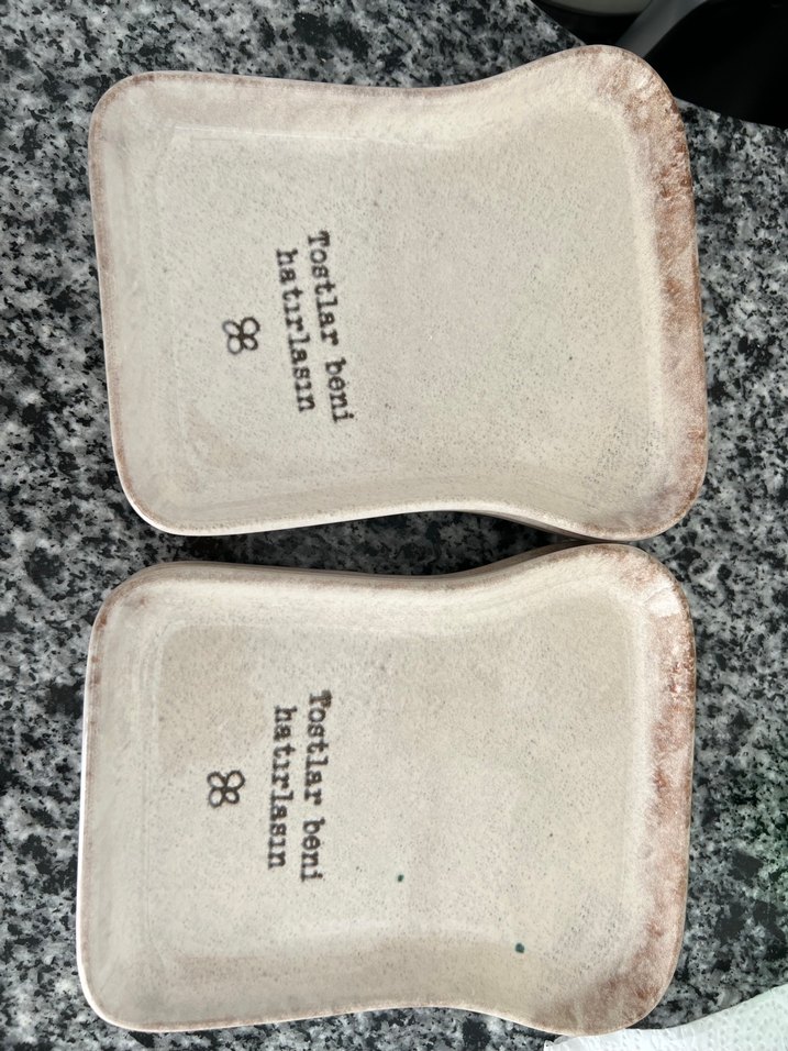 Bej Tost Tabağı Seti, Üzerinde Yazılı