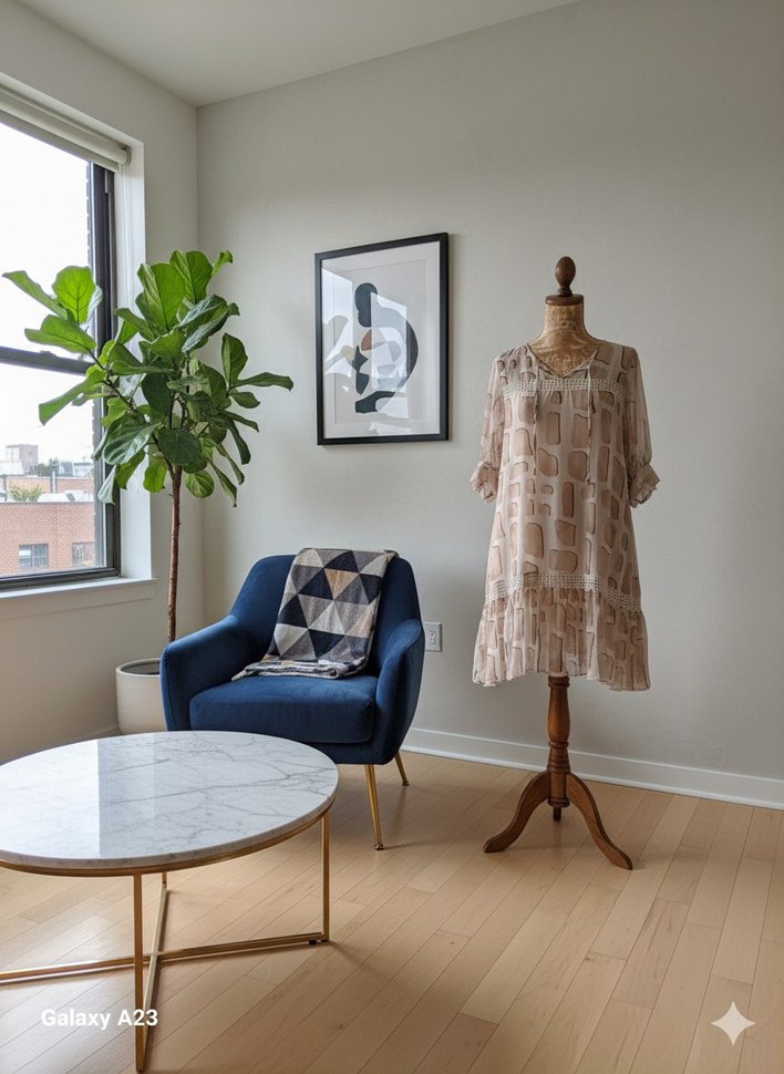 Bej renkte, şifon kumaştan yapılmış, bol kesim, V yaka ve kısa kollu tunik astarlı. Pastel tie-dye deseniyle midi boyda, vintage bohem tarzını yansıtır. S-M-L BEDENE UYGUN