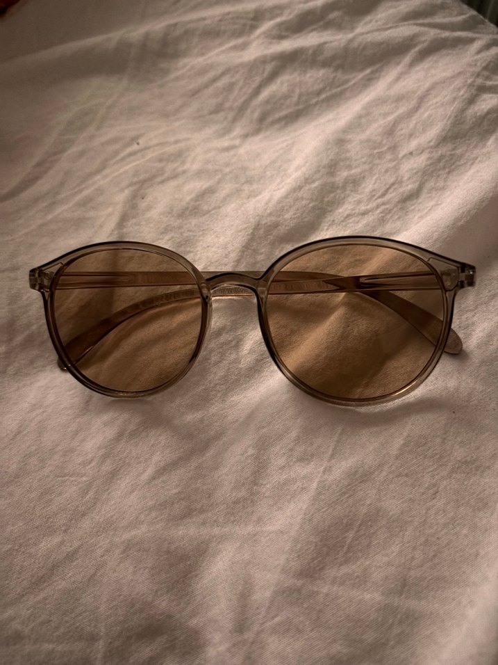 Bej renkte, yuvarlak çerçeveli transparan kadın gözlüğü, minimalist ve normcore tarzıyla sade bir görünüm sunar. ️