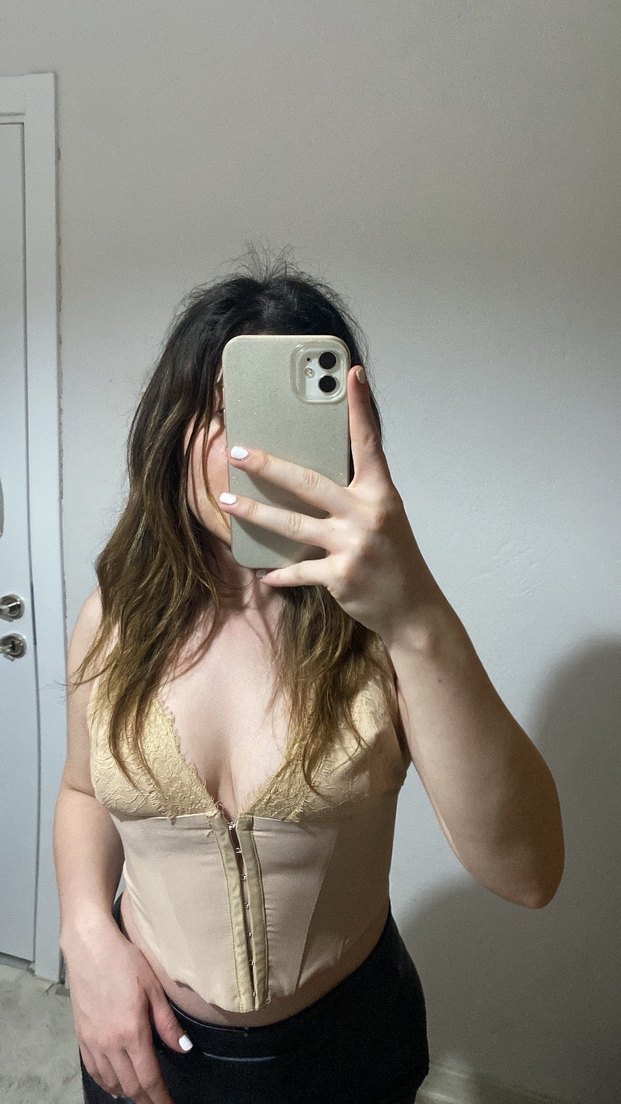 Bej renkli, straplez, vücuda oturan, ipeksi dokulu ve transparan detaylara sahip midi uzunlukta büstiyer. İnce askılı ve minimalist tarzda, günlük kullanıma uygun. ✨ Bu yaz tatilde yeni giymiştim.Tertemiz kullandım. Büyük göğüslü kadınlar almasın sakın.Yırtık sökük asla yok.