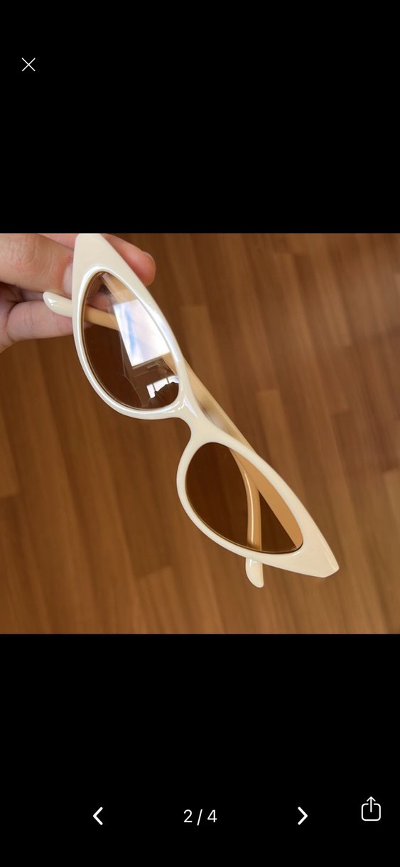 Bej renkte, transparan çerçeveli kadın gözlüğü. Retro kedi gözü modeli, bohem ve hippie tarzlarına uygun hafif tasarım. ️