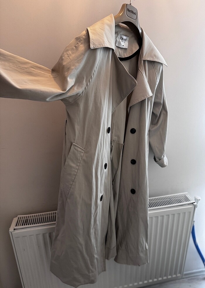 Çok kaliteli bir trençkot Kemik rengi Sadece kuşağı yok O yüzden bu fiyata satıyorum Yurtdışı ürünüdür.