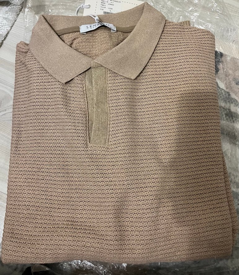 Bej renkli, triko dokulu, yakalı ve uzun kollu erkek polo tişört. Suni kumaştan, regular fit ve günlük sokak stili için uygundur.