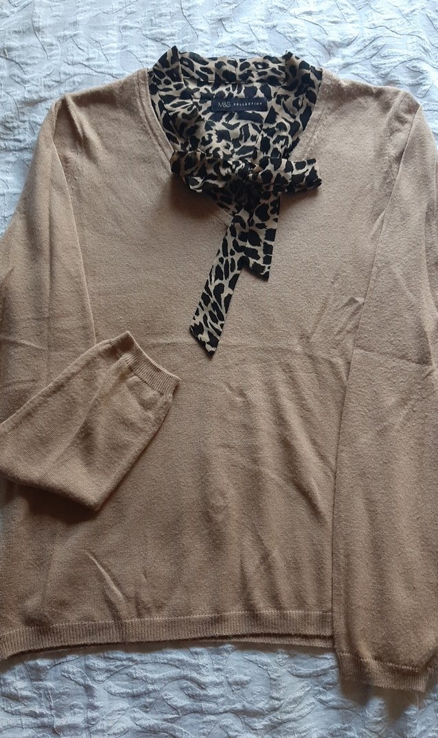 leopar fiyonklu yaka, yün kazak
