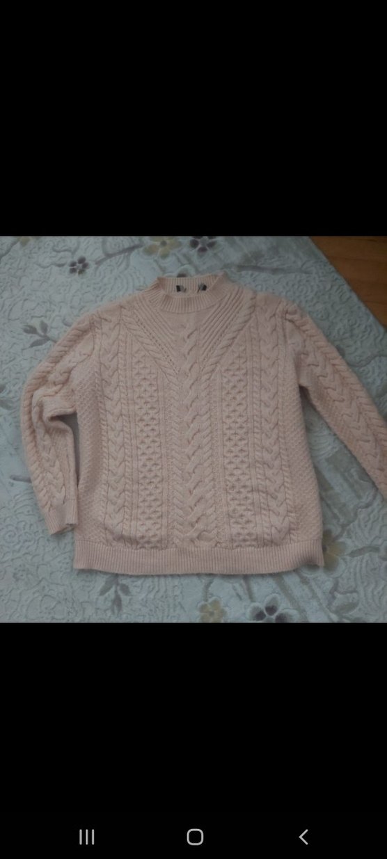 Bej renkte, örme dokulu, yuvarlak yakalı ve uzun kollu, bol kesim kadın kazak. Günlük kullanıma uygun, rahat ve sıcak tutar.