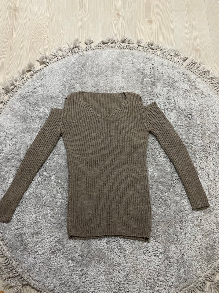 örme kazaktır beden xs-s rahatlıkla kullanabilir yaka kısmı detaylı kollardan pencereli model