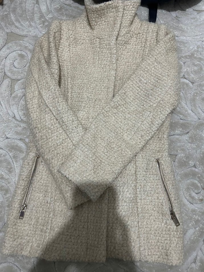 Bej Triko Kadın Midi Kaban