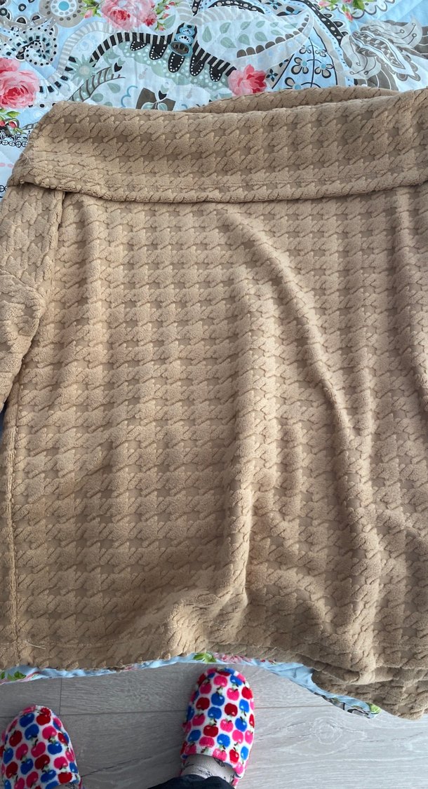 Bej renkte, triko dokuma, kayık yaka, uzun kollu, bol kesim ve normal boyda kadın sweatshirtü. Yumuşak keten kumaştan, günlük kullanıma uygun rahat bir model.