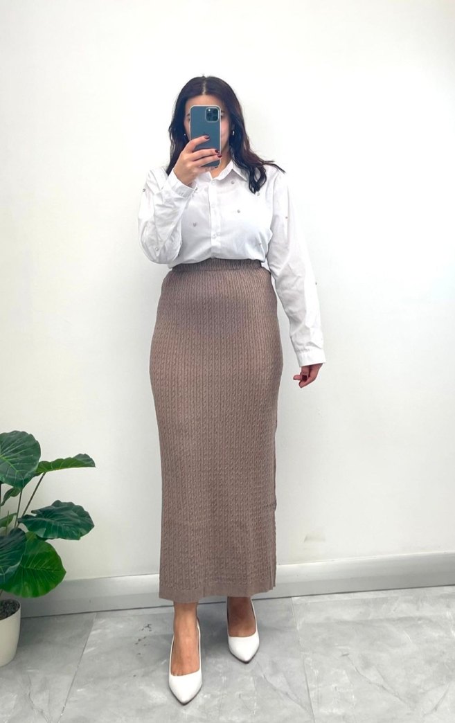 Bej Triko Uzun Kadın Etek renkler mevcut