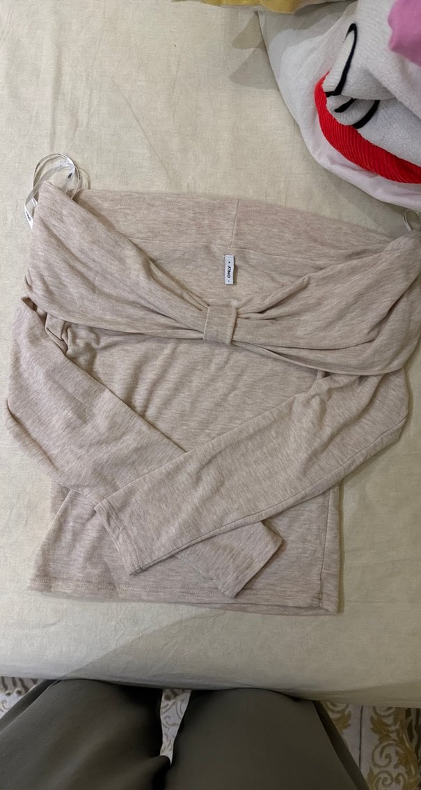 Bej Triko Uzun Kollu bluz