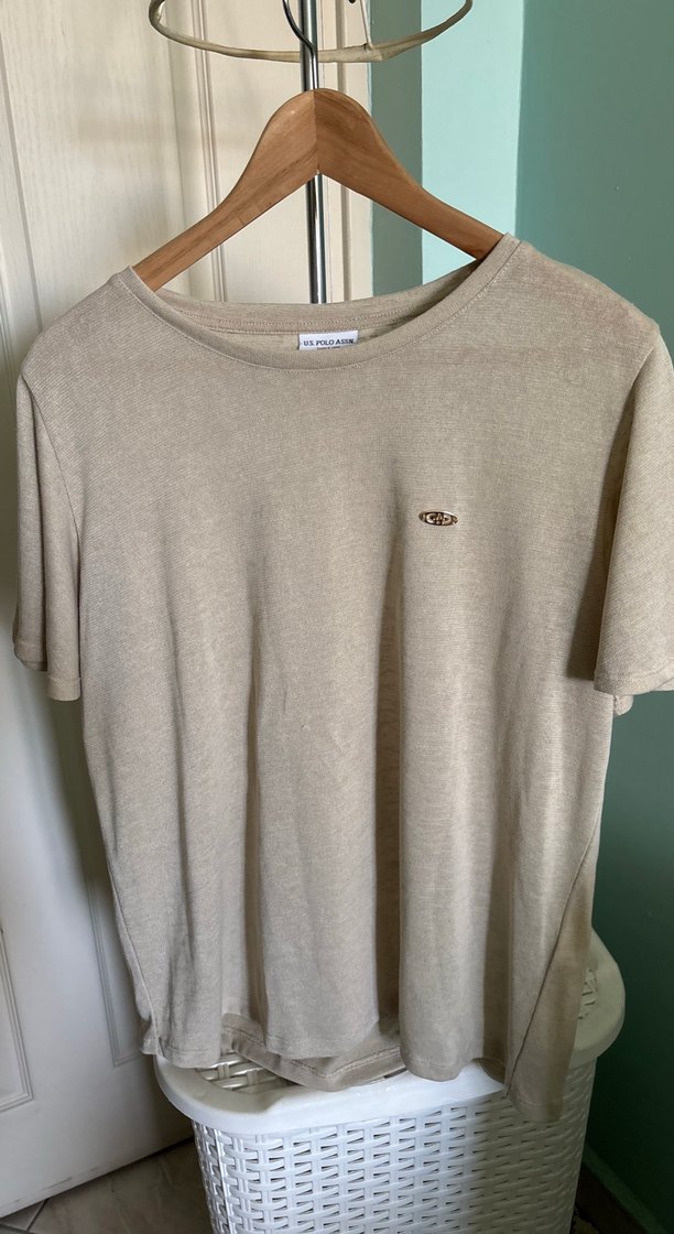 Bej renk, yuvarlak yaka ve kısa kollu tişört. Rahat kesimi ve normal boyuyla günlük kullanıma uygundur. Düz, desensiz tasarımıyla sade ve şık. Hiç giyilmedi