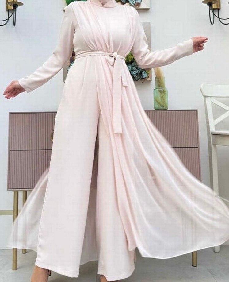 Bej üzeri tüllü tulum