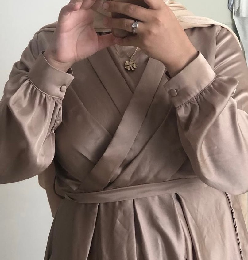 Bej renkli, uzun ve bol kesim kadın sabahlığı, askılı kollara sahip. Düz ve sade tasarımı Paris normcore tarzına uygun.