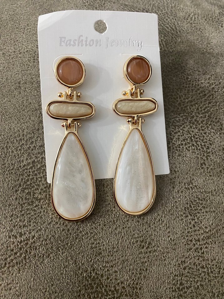 Uzun, bej renkli, boncuk detaylı, minimalist ve bohem tarzda günlük kullanıma uygun küpe. ✨
