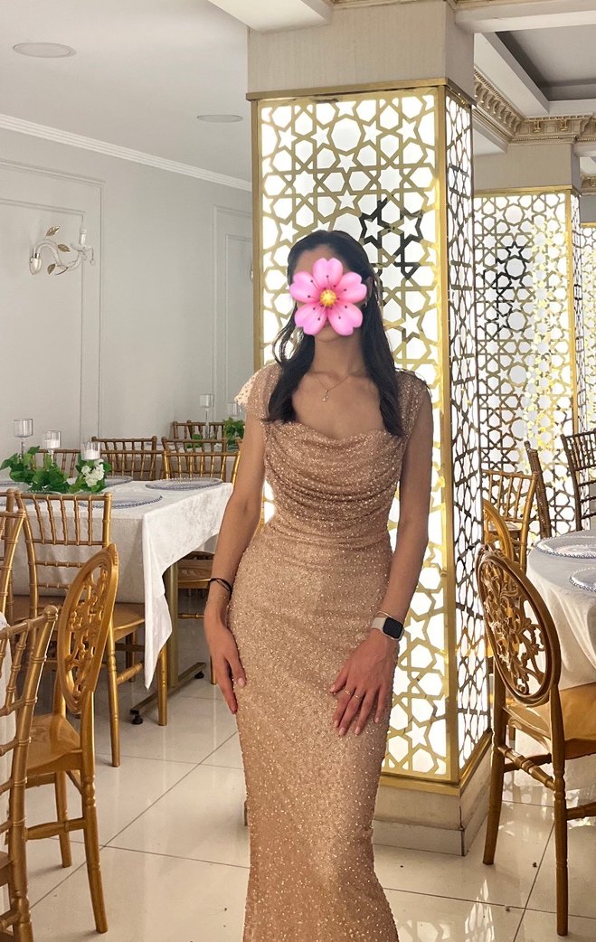 Taşlı balık tipi kolları tüllü uzun abiye 1 kere giydim 6.000₺ değerinde tertemiz