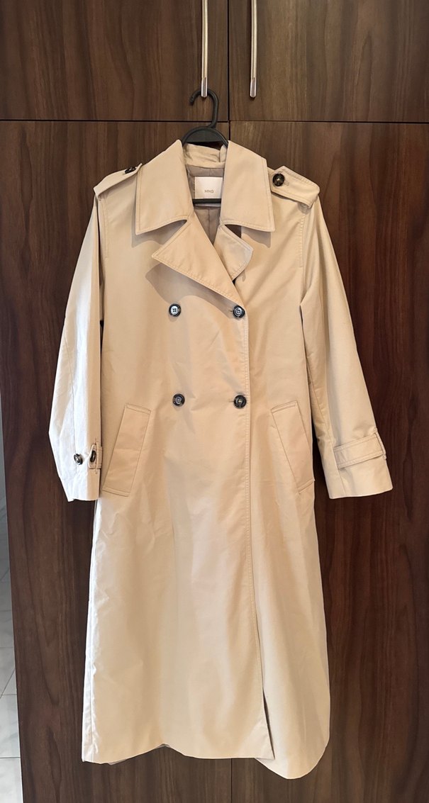 Bej renkli, düğmeli uzun trençkot, kesik yaka ve uzun kolludur. Yumuşak sentetik kumaştan, günlük kullanıma uygun klasik Paris tarzında.