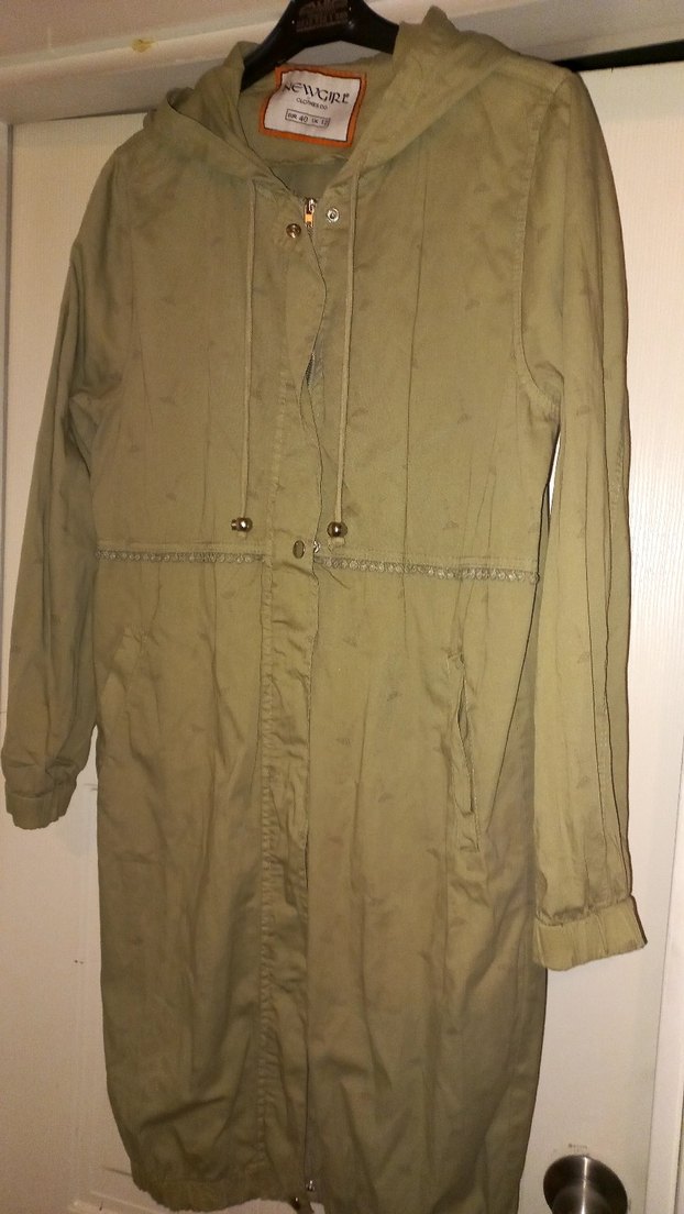 Bej renkli uzun keten ceket, düğmeli ve geniş kesimli. Notlu yaka detayı ve vintage tarzıyla günlük kullanıma uygun.
