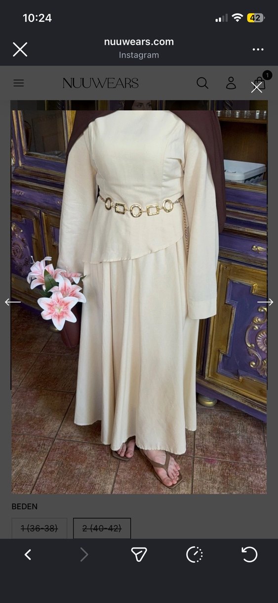 Bej renkte, drapeli uzun elbise kemer dahil değildir. İç gösteriyor iç astar ile giyilmesi önerilir.