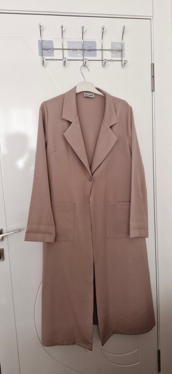 Bej renkli, uzun kesim kadın cekey, notched lapel yaka ve düğmeli kapanışa sahiptir. Uzun kollu, regular fit ve iki ön ceplidir. Ofis için uygun, ipeksi dokulu kumaştan üretilmiştir.