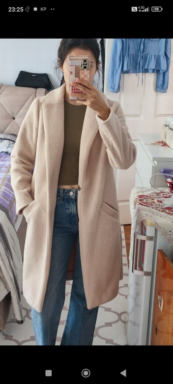 Yumuşak dokulu simli tüylere sahip pudra bej arası bir kaban tülerme yapmayan bir kumaşa sahip çok tatlı sorunsuz bir ürün