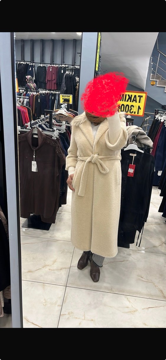 Yumuşak yün kumaştan, bej renkli, uzun ve fitted kesim kadın kaban. Kürklü detaylı, yakasında kesik yaka ve kemer bulunur. Günlük kullanıma uygun şık ve rahat bir parça. Fiyatı 6000 tlydi hiç giymedim