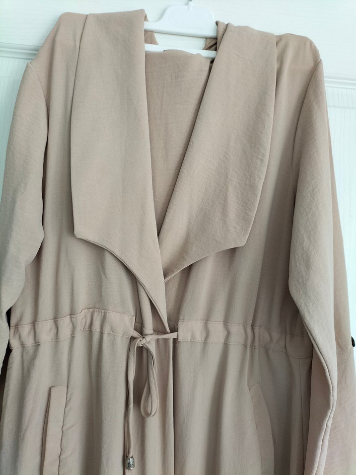 Bej renkte, uzun kadın kap.