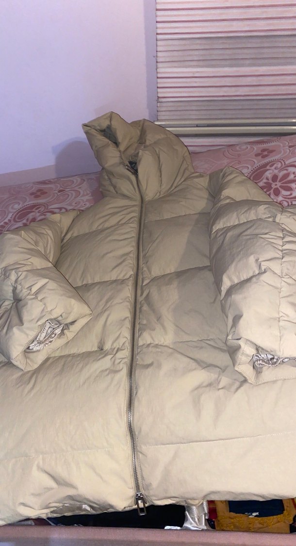 Bej Uzun Kadın Kışlık Mont, Fermuarlı, Yüksek Yakalı