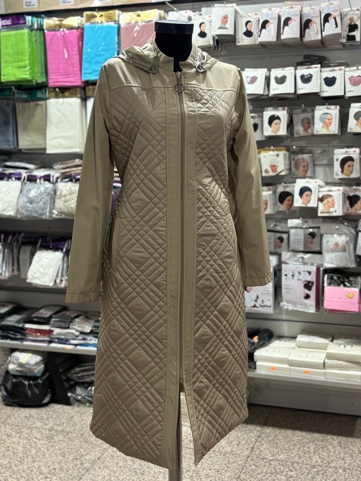 Bej renkli Kışlık Modelimiz Yeni sezon GEÇME KAPİTONE KABAN Bedenler 40,42,44,46,48,50 Uzun siyah kadın kaban, fermuarlı ön, uzun kollu ve kesik yaka detaylarına sahiptir. Sentetik kumaştan, sade kendinden desenli ve regular kesimdir.