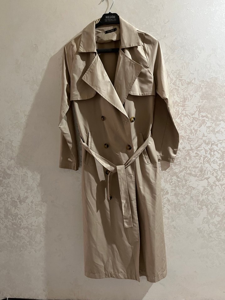 Bej renkte, keten kumaştan uzun trençkot. Notlu yaka ve kemerli, uzun kollu, sade tasarımlı, günlük kullanıma uygun klasik Paris tarzı.