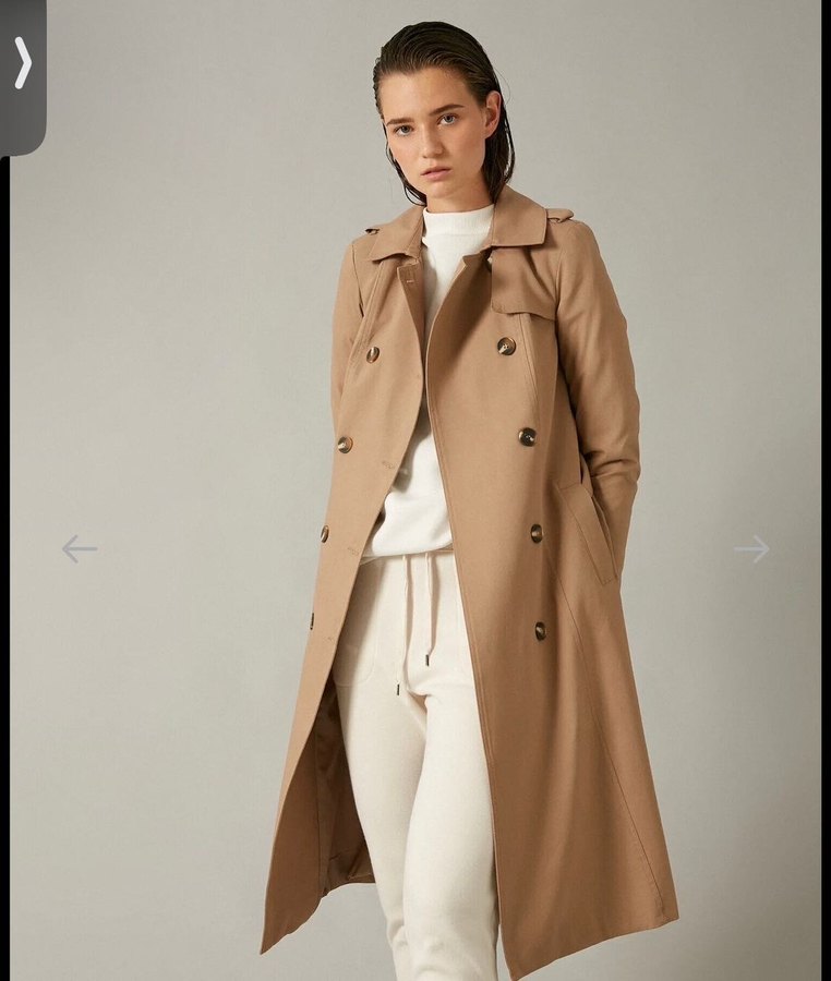 Bej renkli, uzun trençkot. Kullanılmadı.