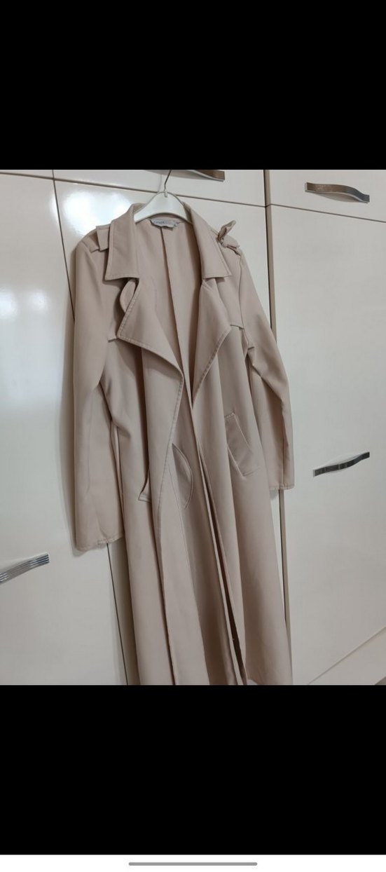 Bej renkte, uzun ve drapeli kadın trençkot. Notched lapel yaka, uzun kollu ve regular fit kesim. Sentetik kumaştan, günlük kullanıma uygun.
