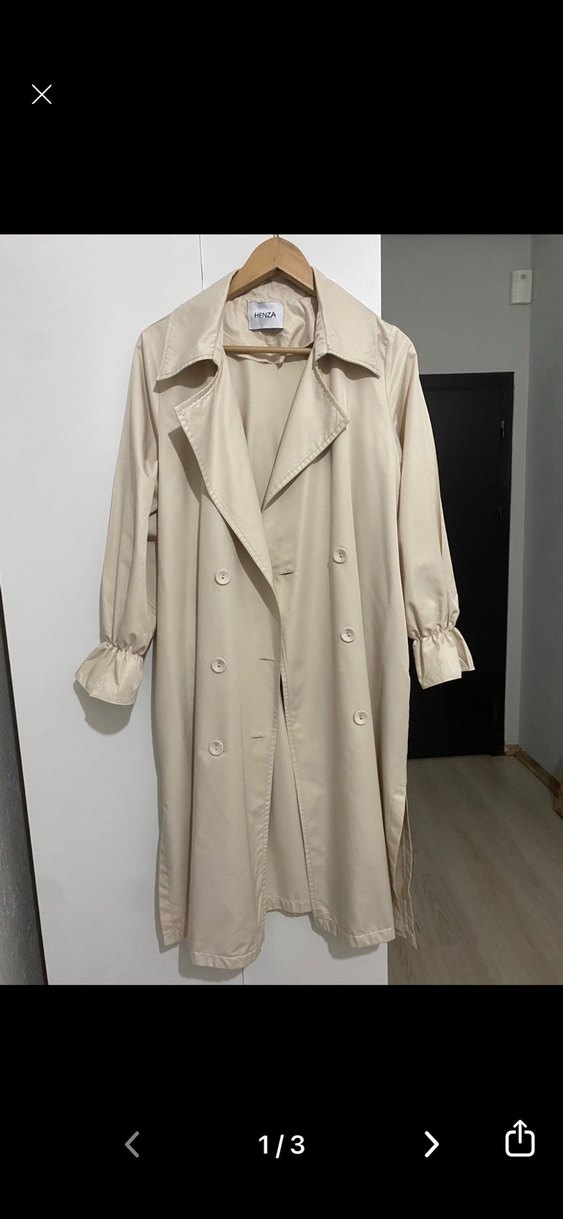 Bej Uzun Kadın Trençkot Düğmeli