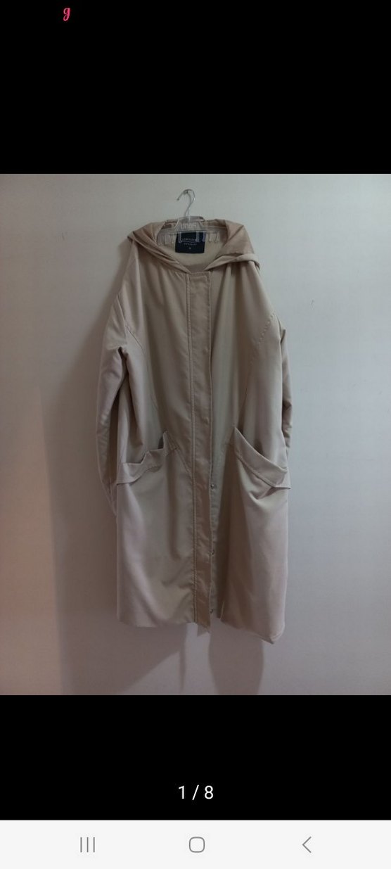 Bej renkli, uzun boylu ve bol kesim kadın yağmurluğu, kesik yaka ve uzun kolludur. Sentetik kumaştan yapılmış, ön ceplidir, minimalist ve şık bir tarz sunar. ️