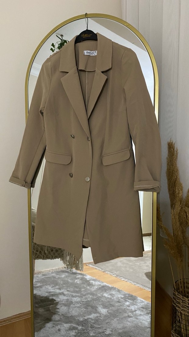Bej Uzun Kesim Kadın Blazer Ceket