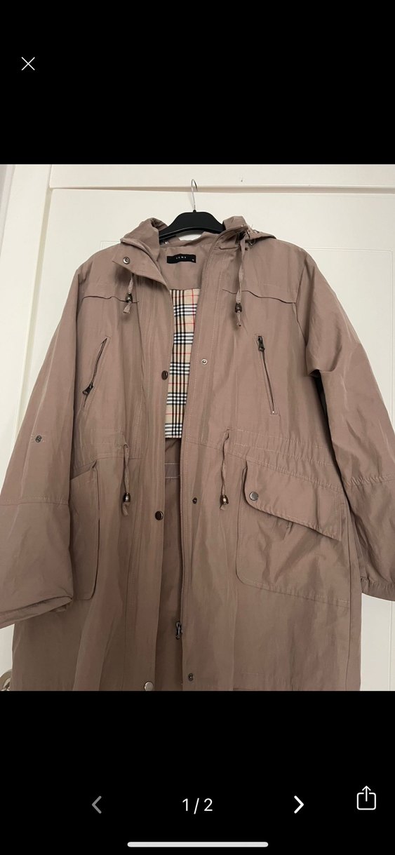 Bej renkli, uzun kesim ve bol kesim kadin yağmurluk. Düğmeli kapama, uzun kollu ve kesik yaka detaylarına sahip, sentetik kumaştan üretilmiştir. ️