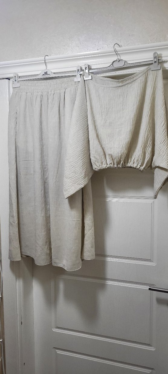 Bej Uzun Keten Etek bel lastikli kimona ust takim