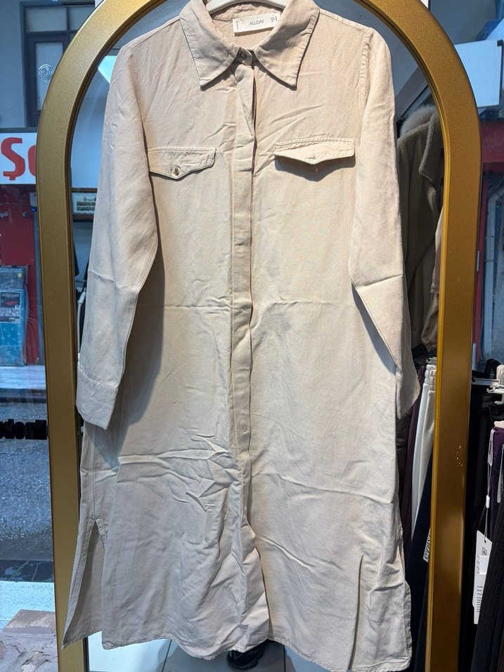 Bej Uzun Keten Kadın gömlek Allday