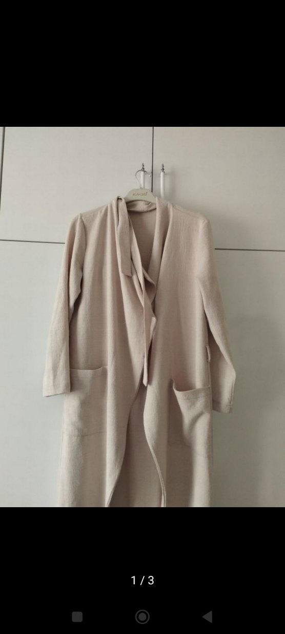 Bej renkli uzun keten kaban, regular fit kesim, drapeli ve yakası notched lapel modeldedir. Uzun kollu, desen içermeyen rahat normcore tarzda bir üründür.geri iade yoktur